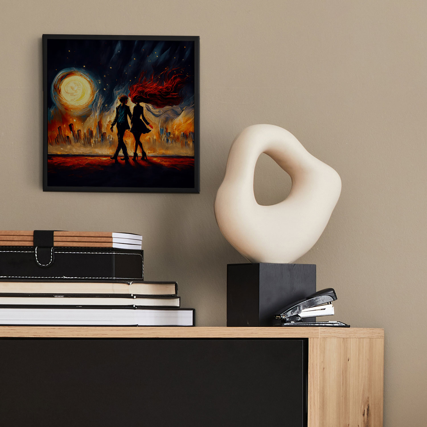 In the fusion of warm earth tones, deep midnight blue, and the golden glow of distant celestial bodies, the philosophy of the collection reveals itself: we are never alone in the dark as long as we honor our own “North Star” our intuition. Whether it is the dance of shadows in the fog or the silent wisdom of an owl in the moonlight, NORTH STAR reminds us that we are part of a larger, interconnected whole. Each artwork is an anchor point helping us maintain the balance between our inner monsters and our divine clarity.
