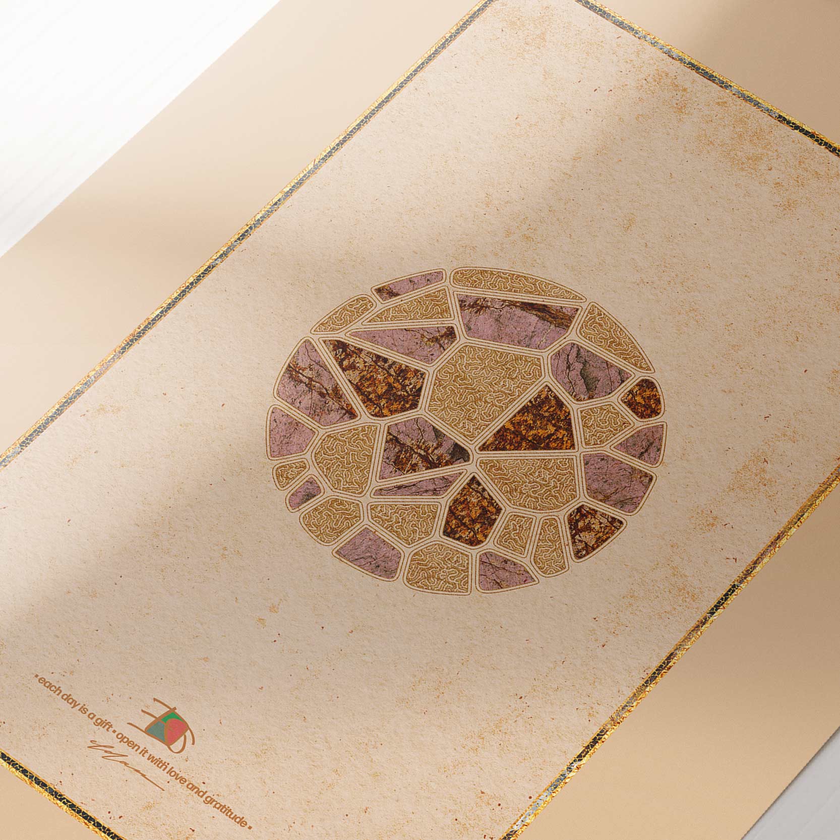 The NEVIA motif explores a universal relationship that lies at the heart of life on Earth: the interaction between sunlight and plant life. This connection forms one of the most fundamental cycles within the natural world. The sun provides warmth, light, and energy. Plants absorb this energy and transform it into growth, blossoms, and living color. Within the NEVIA composition, this relationship is expressed through symbolic forms and subtle structures. Floral elements and radiant patterns evoke both blossoms and sunlight, creating a visual language that reflects the rhythms of nature. The motif becomes a quiet interpretation of the invisible processes that sustain life.