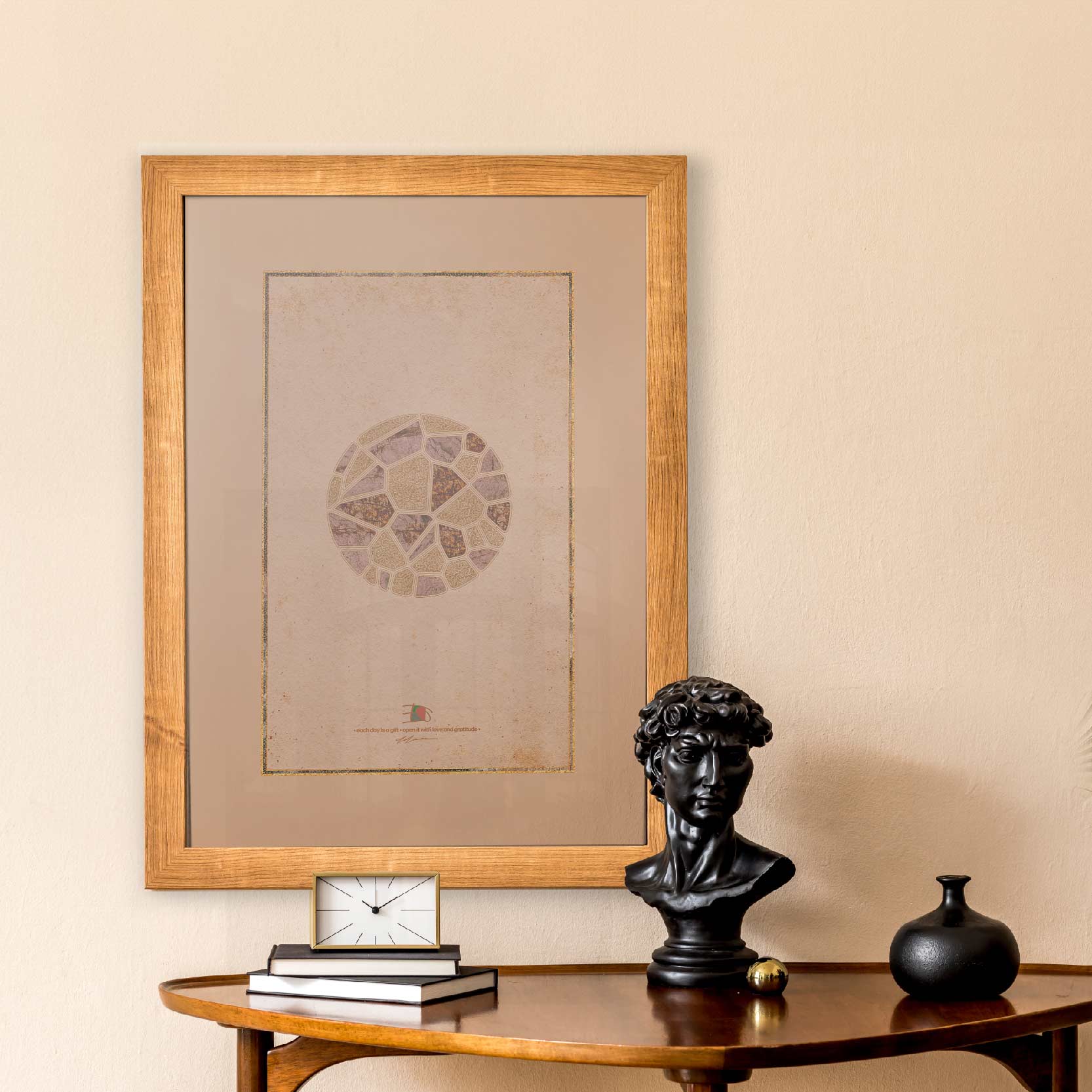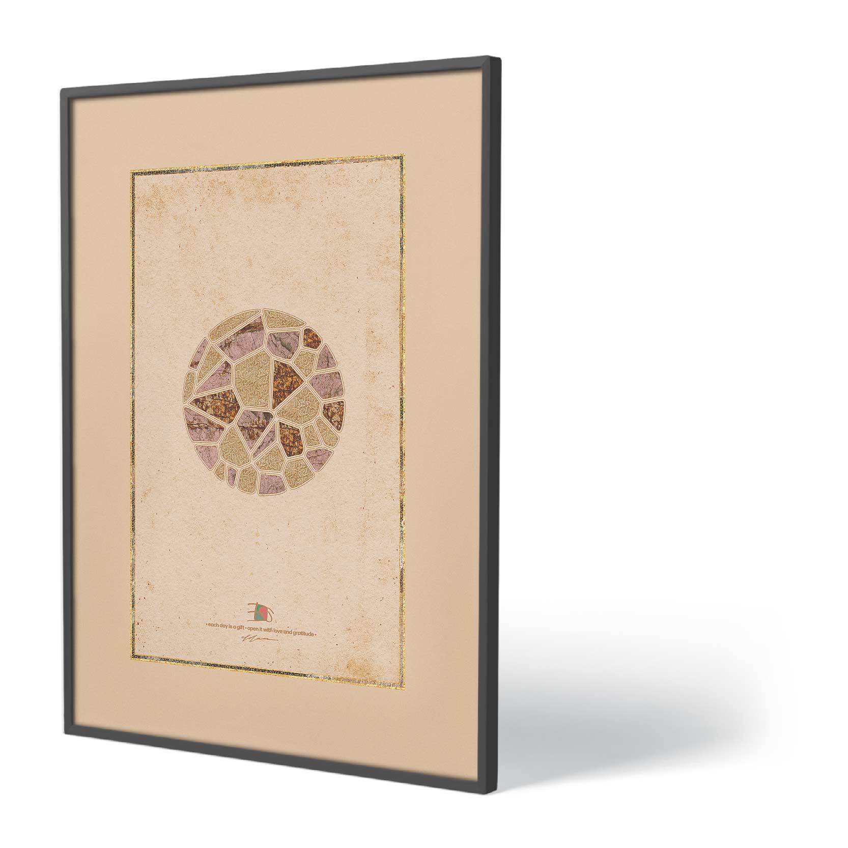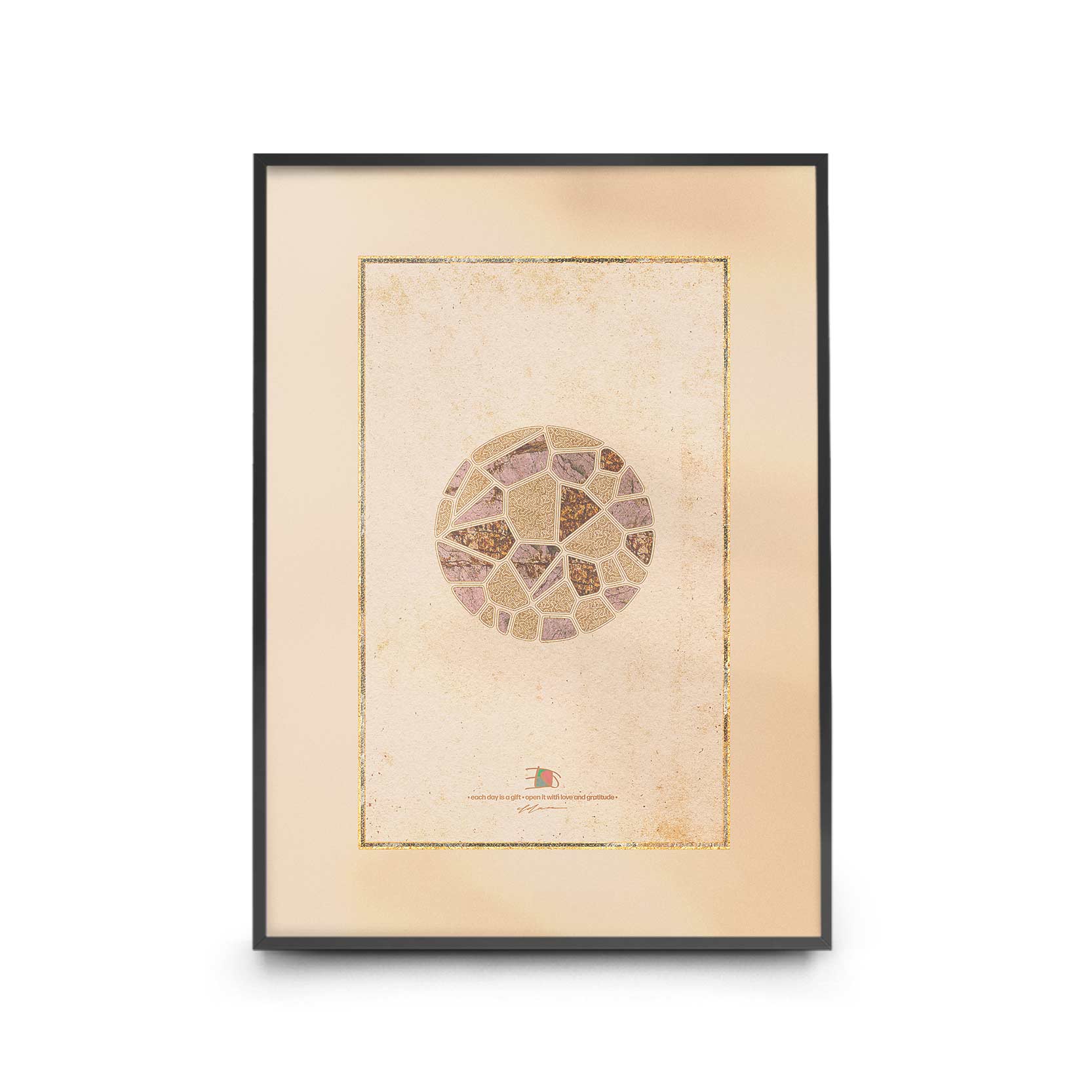 In living spaces the artwork can create an environment of calm vitality. In offices and studios it can inspire creativity and encourage thoughtful reflection. In waiting areas or quiet rooms it provides a moment of visual pause within busy surroundings. Many viewers experience the composition as both energizing and calming. The floral elements symbolize growth and hope, while the luminous structures suggest warmth and stability. Together they create a visual harmony that encourages contemplation.