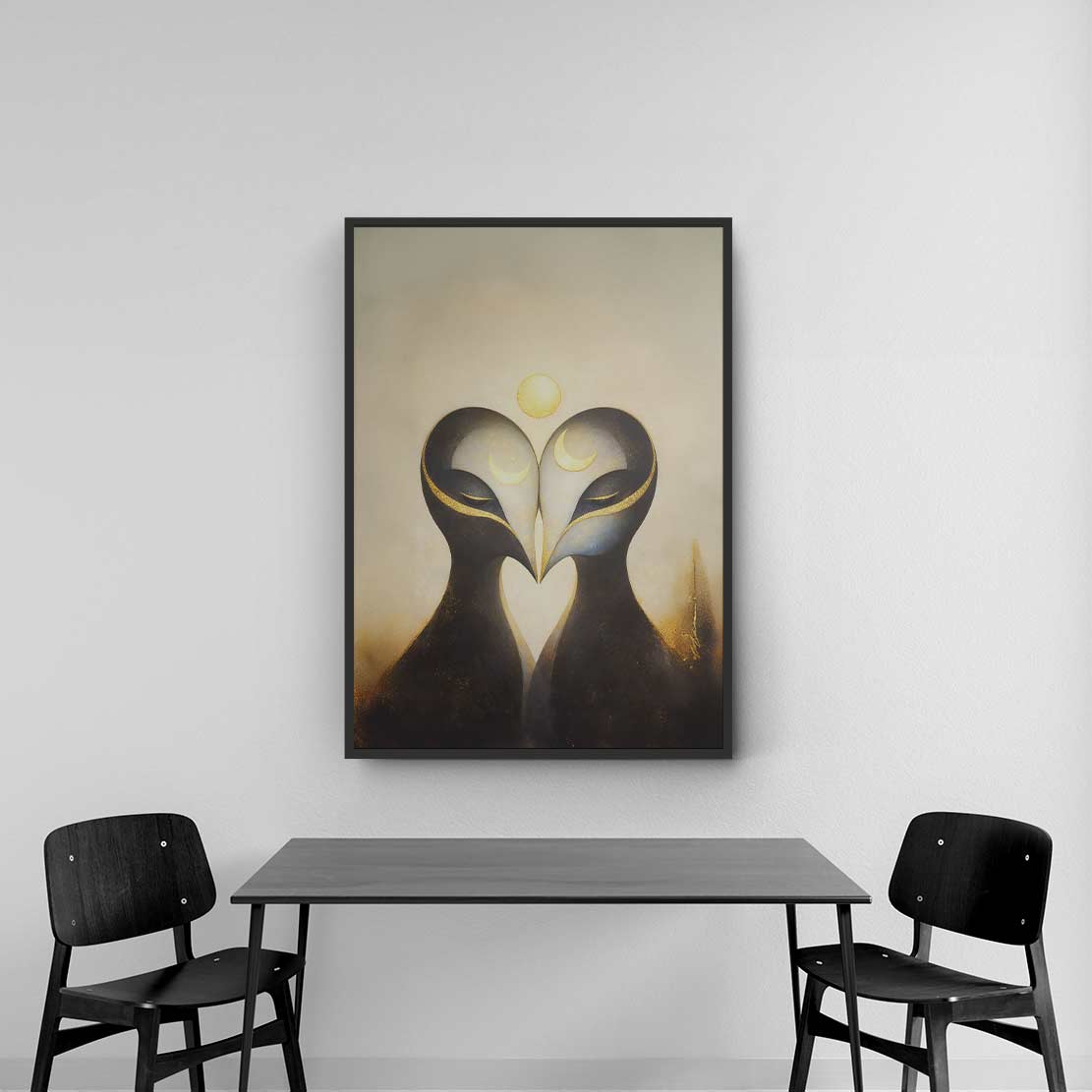 In the fusion of warm earth tones, deep midnight blue, and the golden glow of distant celestial bodies, the philosophy of the collection reveals itself: we are never alone in the dark as long as we honor our own “North Star” our intuition. Whether it is the dance of shadows in the fog or the silent wisdom of an owl in the moonlight, NORTH STAR reminds us that we are part of a larger, interconnected whole. Each artwork is an anchor point helping us maintain the balance between our inner monsters and our divine clarity.