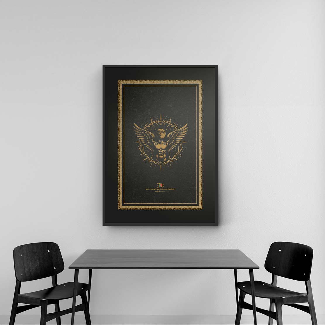 Inspired by Roman history and philosophy, this collection reflects the ideals of strength, discipline, and inner balance. The motifs are not religious statements. They are timeless reminders of human dignity, responsibility, and self-control values shaped through character rather than belief. Rooted in the Roman concept of virtue and self-mastery, these artworks honor the quiet power of standing upright in a complex world. Each viewer is invited to find their own meaning within the images. Live fully, but never without restraint.