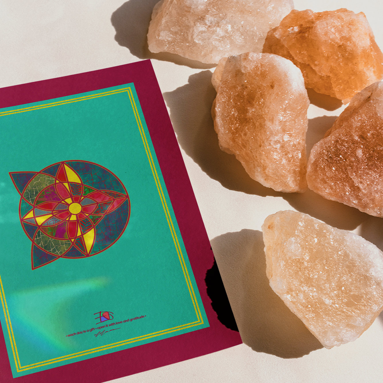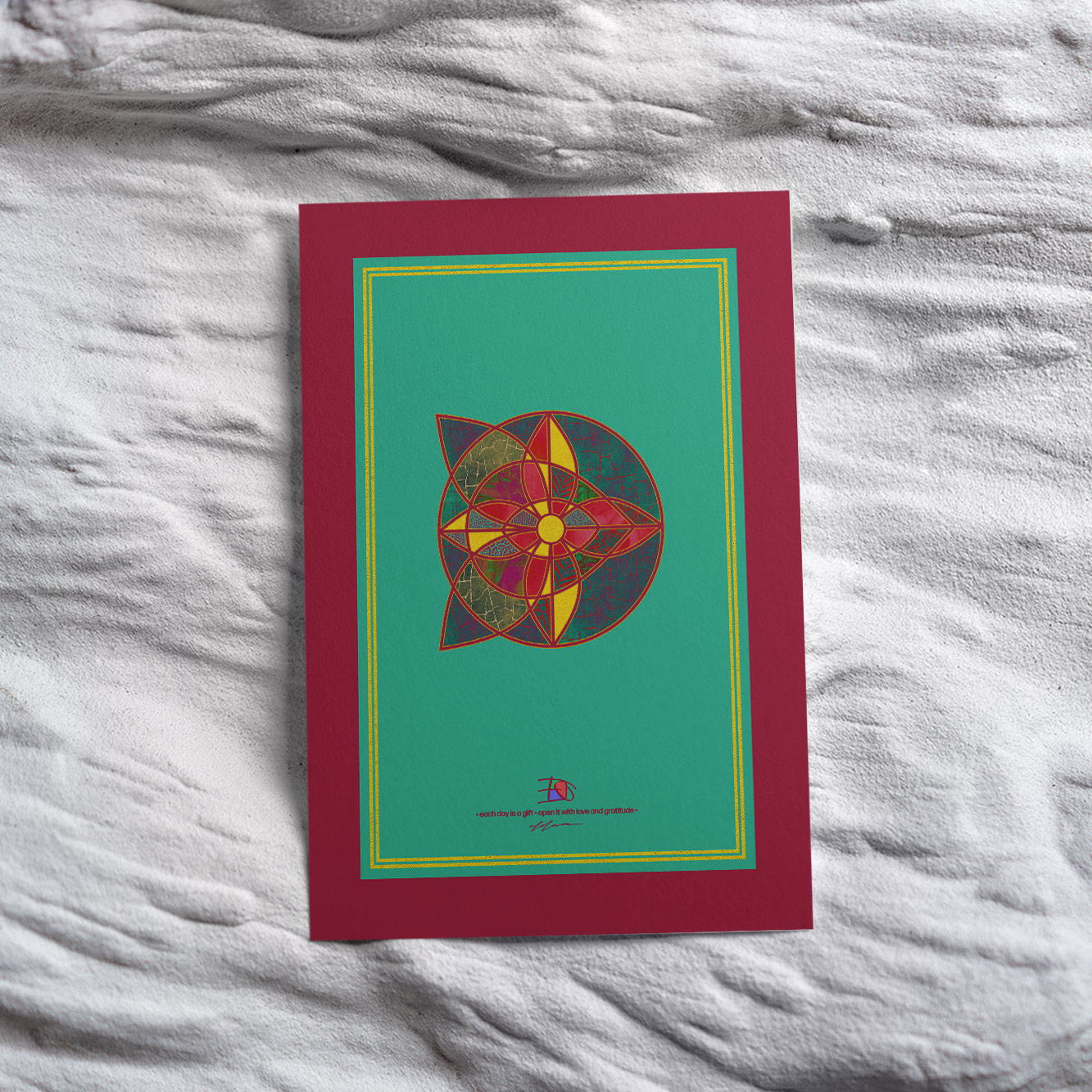 The FAROHILDIS motif reveals a quiet relationship between the sun and flora. Sunlight offers warmth and energy, while plants respond by unfolding blossoms, colors, and life. The composition reminds us that nature is one of our greatest treasures and that every living system is part of a larger cycle. The connection between sun and flower symbolizes growth, hope, and the balance between giving and receiving. As an artwork, FAROHILDIS brings calm inspiration into spaces and invites viewers to rediscover the beauty and wisdom of the natural world.